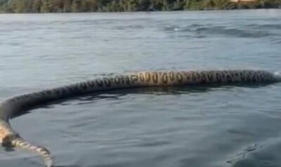 Pescador registra cobra enorme flutuando no rio e deixa internautas curiosos